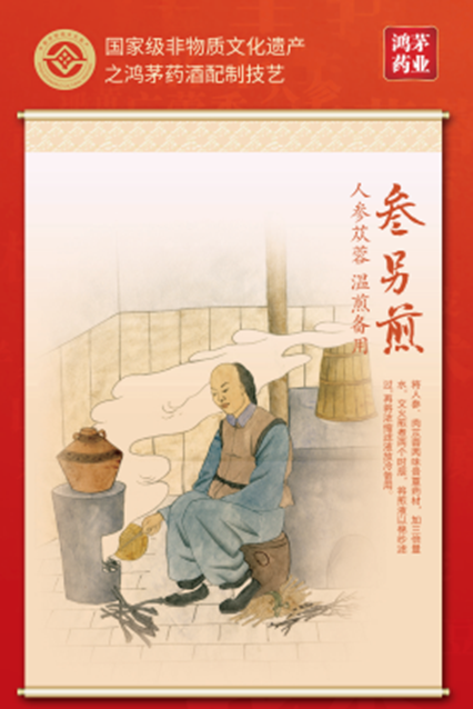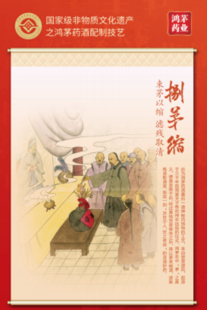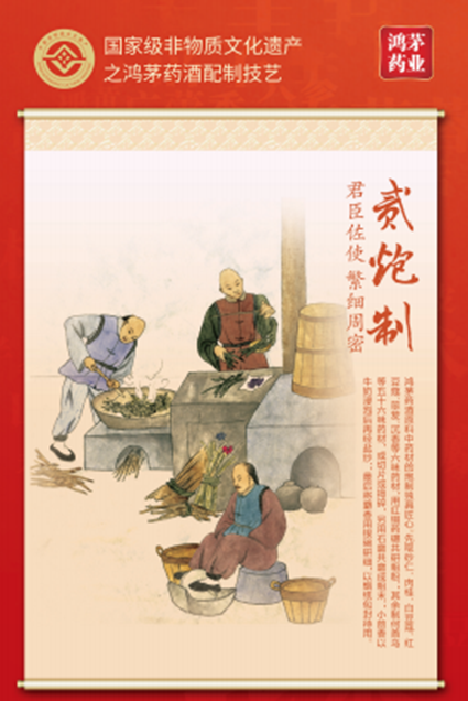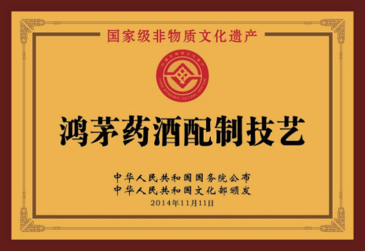 2014 年,鸿茅药酒配制技艺以传统医药类别,入选国务院批准文化部确定的第四批国家级非物质文化遗产代表性项目名录。鸿茅药酒的传统配制技艺——八步古法,包括独特的选药、炮制、另煎、鼎合、封坛、泉浸、地养、茅缩 8 个步骤和 69 道工序。这些工序在细节上的讲究,蕴藏着科学道理,许多方面巧妙利用了当地气候、环境等便利条件,达到温而不燥、补而不峻、阴阳调和、众药归一的品质。
