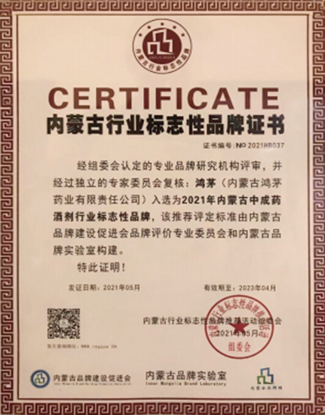 2021年,鸿茅品牌入选为内蒙古中成药酒剂行业标志性品牌