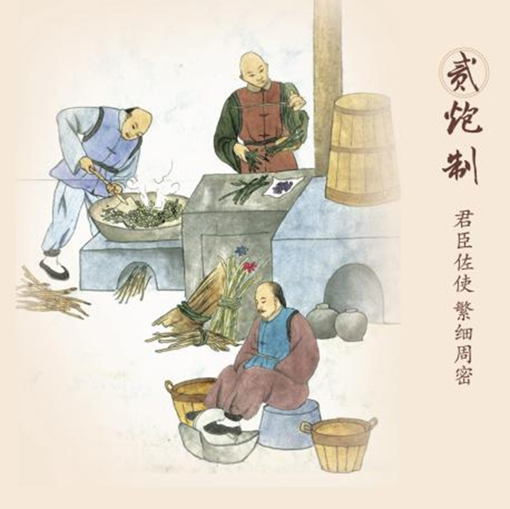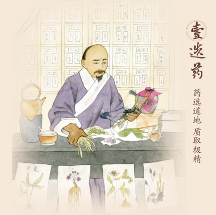 ● 药材选购:选用原产地种植基地的道地药材,严格按照中药材质量标准采购,规范炮制。