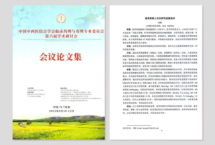中国中西医结合学会临床药理与毒理专业委员会第六届学术研讨会论文集--鸿茅药酒上市后研究进展述评